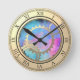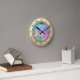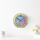Eine Wanduhr, die ein Bild der inneren Arbeiten und des Gesichts einer anderen Uhr hat. niedliches kleines Design, das es so aussieht, als würden Sie durch die Uhr schauen.