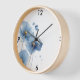 Dieselbe großartige Uhr mit Zahlen, die mit einem schönen Kunstdruck der blauen Blume hinzugefügt wurden. Kaufen Sie, wie es ist oder anpassen. Lizenziertes Bild