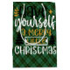 Each gift bag has a tartan pattern with a Christmas element and/or text that is fun and fitting for the occasion.