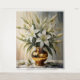 Dieses Bild der Blume Sicher, hier ist ein Aquarellbild von weißen Lilien in einer goldenen Vase, gebadet in warmem Licht, mit komplizierten und detaillierten Pinselstrichen, gerendert in 8K ultra-High-Definition und scharfen Fokus: