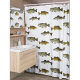 Der perfekte Duschvorhang für den Mann, der angeln oder für den Angelanhänger, die Hütte oder die Kabine Lieben. Das Design zeichnet sich durch ein Muster aus Bass, Bass und Bass aus.