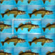 Dieses spaßige Design besticht durch eine große Passel aus Walleye-Pike auf blauem, wässrigem Hintergrund.