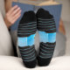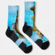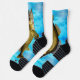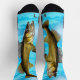 Jede Socke hat einen Walleye-Pike über einem Hintergrund von blauem Wasser.