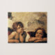Sistine Madonna (Detail) (c. 1512-1514). Künstler: Raphael Sanzio (1483-1520) oder einfach Raphael oder Raffaello. Sistine Madonna (Detail) ist ein Vintages religiöses Portraitbild aus der Renaissance mit zwei Engeln, die nach oben in Richtung Wolken und Himmel schauen.
