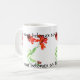Eine weiße Wecker-Tasse der guten Qualität mit auffallender schwarzen Kante und dem Griff, verziert mit ein Entwurf handgemalten Watercolor Wallflowers. Der Text liest, "diese Tasse gehört dem Hauptgärtner". Mikrowelle und Spülmaschinensafe.