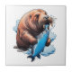 Transparenter Hintergrund Grafischer Seezungenwalrus, der einen Fisch im Ozean fängt