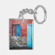 Wand, Tür und Fenster sind rot, blau und grau Schlüsselanhänger