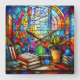 Buntglaseffekt eines Fensters mit Schulbedarf-Wanduhr
