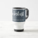 Wanderlust Definition Weiß Graublau Farbe. Die Definition des Wortes Wanderlust ein starkes Bedürfnis zu reisen und die Welt auf einem dunkelblauen grauen Hintergrund mit weißem Schriftart zu erkunden.