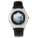 Uhr, Klassische Damenuhr mit schwarzen Lederarmband