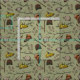 Naturgethematischer, hellgrüner Stoff mit Wanderstiefeln, Sonnenbrille und Zweigen Muster
