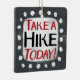 "Take A Hike Today" ist ein niedliches Textdesign in Grau mit schwarzem und rotem Text. Er sitzt auf einer weißen Akzent-Form und niedliche weiße Polka-Punkte, die ihn umgeben.
