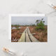 Panoramasicht auf das Bug mit Holzweg, kleine Teiche und Kiefernbäume. Wanderweg mit Holzweg, der über den Sumpf führt...
