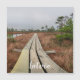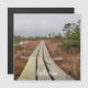 Panoramasicht auf das Bug mit Holzweg, kleine Teiche und Kiefernbäume. Wanderweg mit Holzweg über den Sumpf