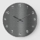 Maskulinische Wanddekorationsuhr mit modernem simuliertem Metallhintergrund, der so gestaltet ist, als gäbe es Löcher in der metallischen Oberfläche mit Zahlen, die sich auf der Uhr abheben. Für Typ, Bürowand in einem Automobilgeschäft oder Küchenuhr in modernster Küchendekoration.