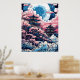 Ein schönes digitales Bild eines Mondes und Tempel mit Kirschblüten.