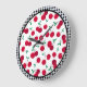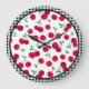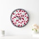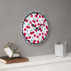 Diese Wanduhr wird mit einem Kirschfruchtprint mit schwarz-weißem Schachbrett gefertigt.