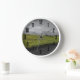 Wanduhr mit weißem Rahmen, in dem Bauernland in teilweiser Farbe dargestellt wird