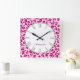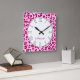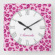Eine einzigartige leopardenfarbene Wanduhr in rosa, lila Farbtönen. Passen Sie Ihren Namen an. Dieses Beispiel lautet Amanda. Einzigartig gestaltet von Sarah Trett.