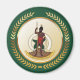 Das nationale Wappen, oder Siegel, von Vanuatu, wird in den Mittelpunkt eines Imitats goldgerippte Kreisform. Um dieses Bild herum, ist ein Imitat goldener Lorbeerkranz, der das Design vervollständigt.