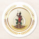 Das nationale Wappen, oder Siegel, von Vanuatu, wird in den Mittelpunkt eines Imitats goldgerippte Kreisform. Um dieses Bild herum, ist ein Imitat goldener Lorbeerkranz, der das Design vervollständigt.