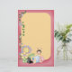 ein weicher gelber Hintergrund, der durch einen rosa Rahmen, verziert mit Reben, Schmetterlinge und Blumen und ein niedliches folkart umgeben wird, hören das Sitzen auf der Unterseite ab. Fertigen Sie dieses wunderliche Briefpapier mit einem Namen besonders an und Sie haben das perfekte personalisierte Geschenk für ein kleines Mädchen!