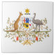Dieses Design hat das australische Wappen. Australien ist ein souveränes Land mit dem Festland des australischen Kontinents, der Insel Tasmanien und zahlreichen kleineren Inseln. Australiens Hauptstadt ist Canberra, und seine größte Stadt ist Sydney. Die anderen großen städtischen Gebiete des Landes sind Melbourne, Brisbane, Perth und Adelaide. Das Wappen Australiens, offiziell Commonwealth Coat of Arms genannt, ist das offizielle Symbol des Commonwealth of Australia. Ein Schild, das Symbole der sechs australischen Staaten darstellt, wird von einem Känguru und einem Emul aufgehalten, die beide aus Australien stammen. Der siebenzeitige Commonwealth Star über dem Wappen repräsentiert auch die australischen Staaten und Territorien, während unter dem Schild verschiedene Blumenegel zu sehen sind.