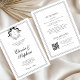 Dieses Wappen French Bow Monogram All in One Wedding Invitation strahlt Eleganz mit seinem Viktorianischen Wappen und schicken schwarzen französischen Vintagen Coquette Bogen Monogramm, gerahmt durch eine stilvolle doppelte Grenze. Ideal für eine feierliche Feier, beinhaltet es individuelle Unterkunft und Empfang-Informationen, sowie einen bequemen QR-Code auf der Rückseite für Online-UAWG. Eine perfekte Mischung aus Tradition und Moderne!