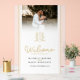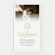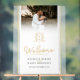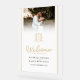 Begrüßung Begrüßungsbanner in weiß mit goldfarbenem Monogramm. Herzkronenkronen Wappen mit Blätter und Beeren monogramm Linie Kunst, personalisieren Sie mit Ihrem eigenen Foto, Monogramm Initialen, Pärchen Name und Hochzeitstag. Einzigartig entworfene und handgezeichnete Monogramm-Kronenkunst von Sarah Trett für www.mylittleeden.com auf Zazzle.