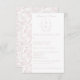 Rosa Monogramm Wappen Wedding Invitation Suite: RSVP card: Vintag inspiriert Line Art Monogram Wappen mit eleganter Rosa Typografie. Ein chinoiserie blumengeschmücktes Muster von Bauern für zeitlose Eleganz.