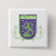 Das finnische Wappen neu erstellt für Tag St. Urhos in Lila und in Grünem, mit einer Heugabel, einem Halo, Heuschrecken und Trauben.