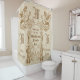 Schöne Illustrationen des 19. Jahrhundertsder mittelalterlichen Drachen und schottischen der Clanmitglied-Krieger, die Kilts tragen und ein Schild und eine Klinge halten. Verziertes Distellaub schließen den gerahmten Entwurf ab. Vintage Sepiatöne auf beige Hintergrund. Ersetzen Sie den Beispieltext durch Ihre Selbst für ein personalisiertes Geschenk.