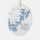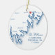 Celebrate your first Christmas as a married couple with this elegant navy blue South Coast, MA map keepsake wedding ornament, perfect for a Wareham wedding. This personalized design features your wedding location on the front and your favorite wedding photo on the back, creating a meaningful holiday heirloom. Ideal for couples married at Bay Pointe Club, White Cliffs Country Club, Waverly Oaks Golf Club, Stonebridge Country Club, or The Rosebrook Event Center. Artwork by Coastal Map Designs