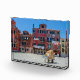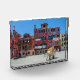 Malerei des Platzes Venedig. Kart mit Kisten inmitten des alten italienischen Platzes mit bunten Gebäude in Venedig, Italien. Post, Zustelldienst in Italien