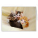 Three adorable kittens snuggled together in bed create a warm and fuzzy scene for a variety of occasions. Customize on all four sides of this card with any text and add your own photos.