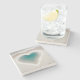 A heart-shaped pool of water with aqua hues is nestled within a sandy beach, surrounded by foamy waves. The ocean meets the shore in the background, creating a serene and romantic scene.