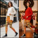 Warm Autumnal Gradient Yellow Green Plaid Leggings