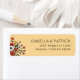 These return address labels feature a warm beige background with a charming, hand-drawn bouquet of flowers on the left side, including white daisies, red poppies, and pink blossoms. The right side showcases clean, uppercase sans-serif typography for easy customization, providing a modern yet classic feel. The design balances minimalistic text with decorative floral elements, creating an inviting and personal touch perfect for adding a unique flair to your mailings.