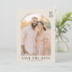 Diese Save-the-Date-Hochzeitskarte zeigt ein warmes, einladendes Design mit einem gebogenen oberen Rand, der einen zentralen Fotoplatzhalter umrahmt. Die Farbpalette umfasst gedämpfte Erdtöne wie Beige und zartes Pfirsich, die eine ruhige Atmosphäre schaffen. Elegante Serifenschriften betonen die "Save the Date"-Nachricht, während anpassbare Platzhalter eine Personalisierung von Namen und Ort ermöglichen. Die vintage-modern anmutende Ästhetik verbindet traditionelle Typografie mit zeitgenössischer Schlichtheit und ist somit perfekt für Paare, die einen Ton der Wärme und des Feierns setzen möchten.