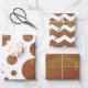 Warm-braune Muster-Wrapping Papier Koordinierte Sets sind perfekt für alle Ihre Geschenkbedürfnisse. Unser Design zeichnet sich durch unsere hellen Farben in Zickzackstreifen, Polka-Punkte und ein Farbfeld aus, alles mit unserer charakteristischen Textur. Gute Geschenkverpackung!