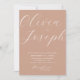 Fügen Sie Ihrem Fest eine romantische Touch mit dieser gemütlichen pfirsichfarbenen Minimalistin hinzu. Der weiche pfirsichfarbene Hintergrund und die elegante moderne Kalligrafie schaffen ein raffiniertes und dennoch einladendes Design, das sich ideal für romantische, bohobolde, rustikale Hochzeiten im Sommer oder Frühjahr eignet. Die Rückseite beinhaltet Platz für Ihr Foto und einen QR-Code, um Gäste zu Ihrer Hochzeitswebsite oder Ihrer UAWG zu verbinden. Erhältlich sowohl in gedruckter als auch in digitaler Form als Download. Dieses vielseitige Design verbindet sich wunderbar mit warmen, neutralen oder blumengeschmückten Paletten.