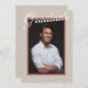 The stamp-style border adds a timeless keepsake feel, while the warm color palette makes this design feel approachable, modern, and stylish. Ideal for families seeking a modern graduation announcement with a vintage stamp look, especially those who prefer neutral, earthy tones over traditional navy.