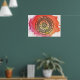Die gefärbte Krawatte auf Sun-Basis in Rot, Orangen und Gelb in einem Spritzer-Farbmuster füllt den Hintergrund für ein originelles Mandala-Design.