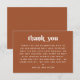 A minimalist wedding thank you card with a clean layout and modern typography. Designed for a polished and effortless look, it keeps your message clear and easy to read without unnecessary details. Works well as a simple, stylish way to thank guests after your wedding. The warm sienna (terracotta brown) color creates a strong, cohesive look and pairs easily with neutral and earthy wedding palettes. Perfect for fall weddings, desert venues, and modern minimalist celebrations.