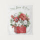 Rustikale Saison V| Schöne Ferienanlage und rot-weiße Blume sind in einem roten Behälter gebündelt. Der Satz "Bleibe Warm & Cozy" und ein Blumenhintergrund runden das Kunstwerk ab. | 57373HR