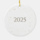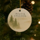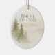 An ivory and warm taupe ornament featuring soft watercolor pines beneath the phrase “Peace & Stillness.” The back displays the year in taupe script with light gold snow dots. A refined neutral design for those who enjoy calm, nature-inspired accents during the holiday season.