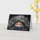 Ein nahes Foto eines Mädchens, das durch einen furiosen grauen Park guckt, mit nur ihren Augen heraus guckt, ist das Thema meiner Grußkarte "Warm holen will deinen Weg".