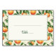 Diese Hochzeitplatzkarte zeigt ein charmantes Design mit einem sich wiederholenden Muster aus Pfirsichen und grünen Blättern auf einem hellen cremefarbenen Hintergrund, das einen einladenden und eleganten Rahmen um den zentralen leeren Raum bildet. Die warmen orangen Farbtöne der Pfirsiche kontrastieren schön mit den verschiedenen Grüntönen der Blätter und unterstreichen das natürliche Thema. Anpassbare Textfelder ermöglichen eine Personalisierung, wodurch es perfekt ist, um Namen und Tischnummern in einer stilvollen Schreibschrift hinzuzufügen. Die allgemeine Stimmung ist frisch und anspruchsvoll, ideal für Hochzeiten oder formelle Veranstaltungen, die einen Hauch von Laune und Wärme suchen.