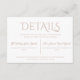 Verlass deine Gäste nicht im Dunkeln! Erkunden Sie Ihre Hochzeitsdetails mit diesen stilvollen Eintrittskarten ✨ Einladungen zum Hochzeitsfeiern, die den Ton für Ihren großen Tag Set machen, aber manchmal brauchen Sie etwas mehr Platz, um alle wesentlichen Details zu teilen. Hier kommen die Karten für die Hochzeitdetails zum Einsatz! Diese praktischen kleinen Helfer sind wie Mini-Karten und Menüs, die zu einem gerollt sind, um sicherzustellen, dass Ihre Gäste genau wissen, wohin sie gehen, was sie tragen und was sie an Ihrem besonderen Tag erwarten. Egal, welcher Stil Sie mögen, die Möglichkeiten sind endlos! Hier ist, was Sie mit Ihrer Hochzeitsdetails-Eintrittskarte für: Zeremonie und Empfang Details: Klar Staat der Zeit, Ort, und alle Kleidungscode-Informationen. Reiseführer: Hier finden Sie Hotels in der Nähe und können auch für hotelexterne Gäste einen Shuttleservice anbieten. Link zur Hochzeitsseite: Direkt zu Ihrem Online-Hub für RSVPs, FAQs und weitere Informationen. Geschenkgutachten: Machen Sie es Ihren Lieben leicht, Ihr neues Kapitel mit dem perfekten Geschenk zu feiern. Spezielle Anleitung: Lass den Gästen, sich über unverstopfte Zeremonien, Lebensmittelallergien oder lustige Überraschungen wie Sparkler oder Konfetti-Ausgänge zu informieren. Mit der Wedding Details Enclosure Card geben Sie nicht nur Informationen - Sie setzen die Bühne für ein angenehmes und sanftes Erlebnis für alle Ihre Gäste! Und sie sind ein schöner Sake, den die Gäste lange nach dem letzten Tanz schätzen können. Sind Sie bereit, Ihre Hochzeitsarbeit zu erhöhen? Bestellen Sie noch heute Ihre Hochzeitsdetails-Eintrittskarten und verabschieden Sie sich von verwirrten Gästen und heißen Sie herzlich willkommen zu einer perfekt geplanten Feier!