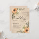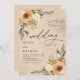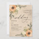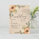 Dieses Design, das ein gemütliches, natürliches Ambiente hervorruft, zeichnet sich durch malerische Blüten in warmen Pfirsich- und Cremetönen aus, die durch zarte, grüne Sprigs unterstrichen werden. Die altmodische Papierstruktur verleiht dem Ganzen einen rustikalen Charme, der perfekt für einen intimen, erdigen Anlass geeignet ist.